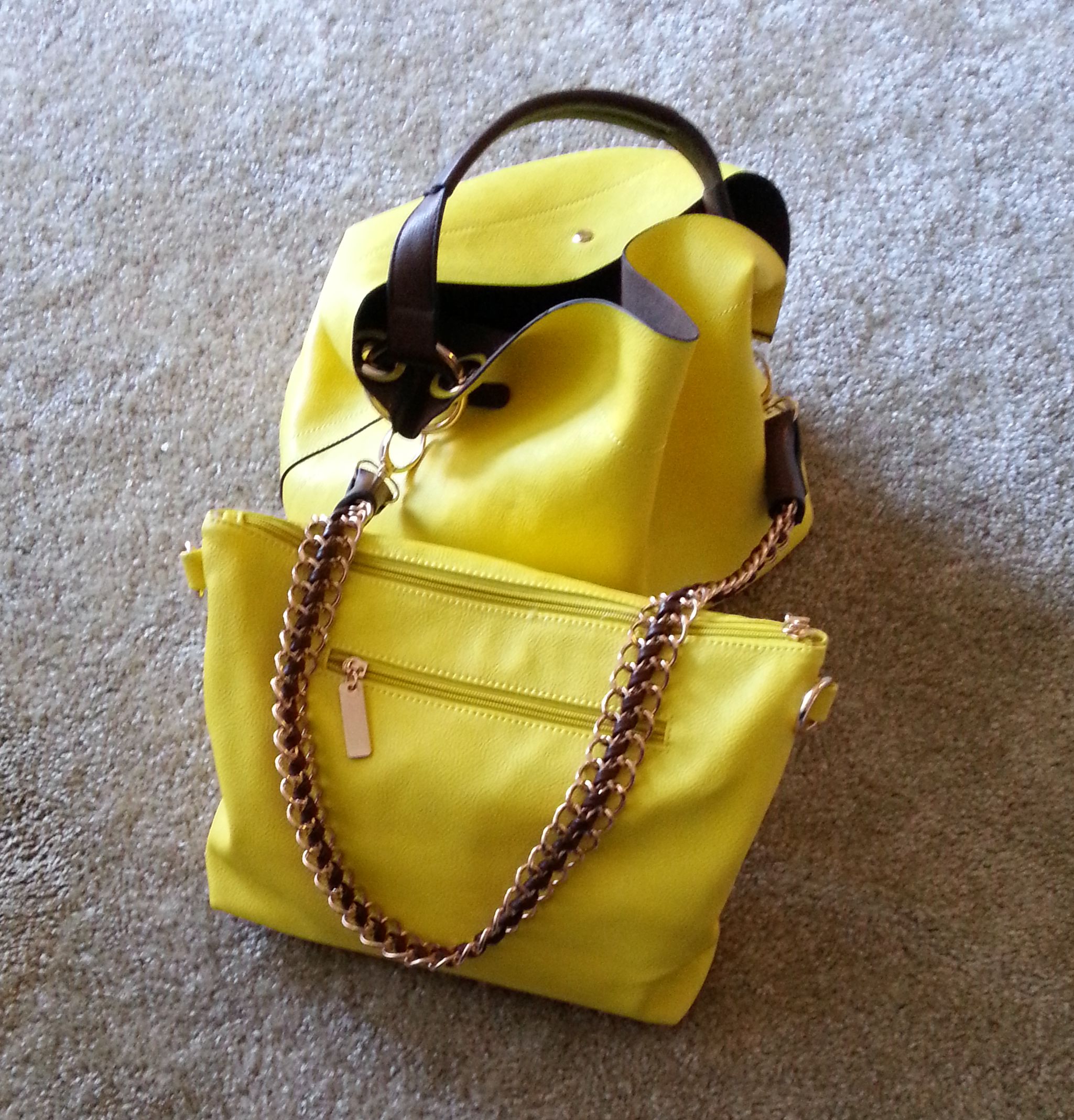 OBSESSED!!! This bag and I are currently engaged in an INTENSE love affair and are deep in the honeymoon phase.  First of all it is two bags in one.  The inner bag keeps everything organized and also has a strap and can be used independently as a small cross-body   The large outer bag has an AMAZING chain link strap that goes perfectly with the purse in all occasions.  But enough of my infomercial cause he it’s mine and we are never breaking up!!