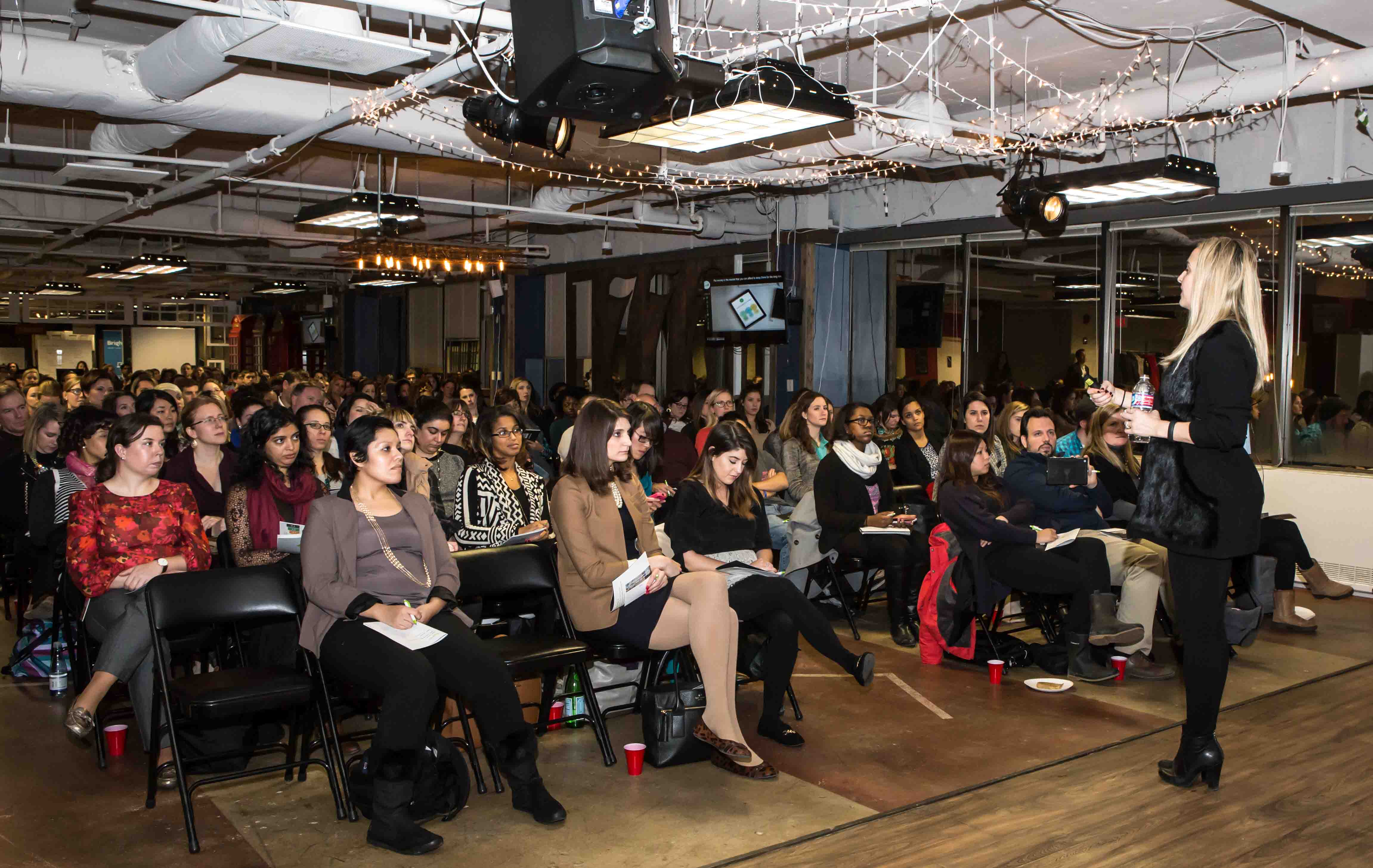 Last week I had the pleasure of attending the debut LearnVest Live.  I signed up for LearnVest last year but hadn’t yet fully explored all it had to offer.  The idea of it sounded great and I need all the money management knowledge I can soak up so I joined and then promptly put it on the back burner :-/.  When I got the email that LearnVest is committed to helping everyone get financially confident in 2015, the flame was rekindled and in the spirit of 2015 being my best year yet, I decided it was time to tackle my finances head on with LearnVest there to help guide me.  This event was created to help everyone put their best foot forward with a lecture from founder Alexis von Tobel at 1776. Seems like everyone got them memo that it was time to get right cause it was a PACKED audience but like a good little scholar you can see me right up front!