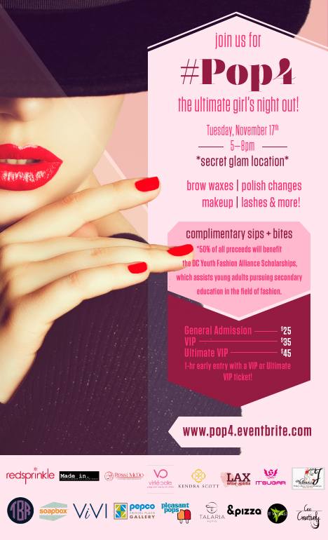 Happy Monday!!! I am excited to announce that I have been invited to be a Glambassador for the Red Sprinkles #POP4 – a pop up beauty lounge. Many are beginning to realize that DC has Fashion and you can get your beauty & fashion fix with us on November 17th (two days before my birthday!!).