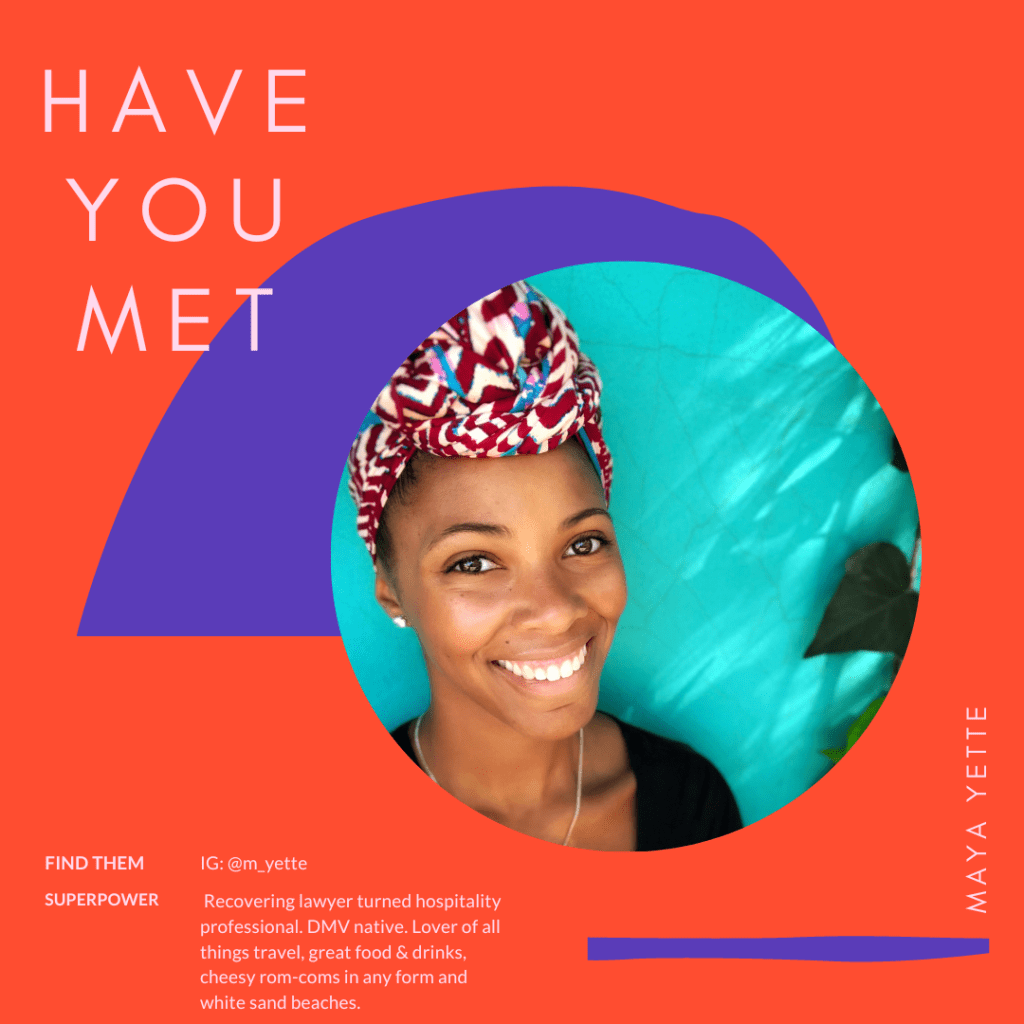 Brief Bio: Recovering lawyer turned hospitality professional. DMV native. Lover of all things travels, great food & drinks, cheesy rom coms in any form and white sand beaches.
