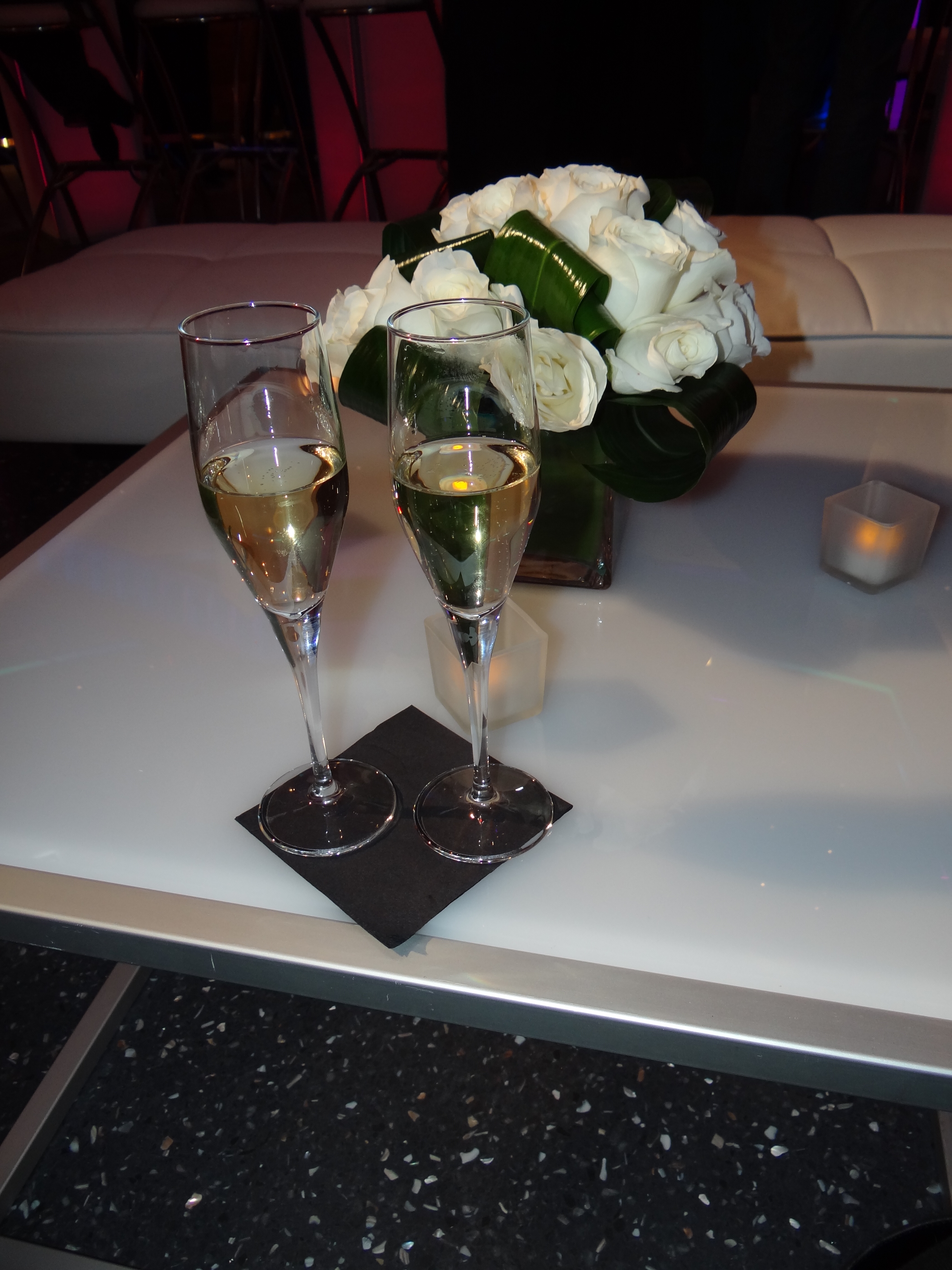 Following that we headed downstairs to the lounge that they had built in front of the Starbucks kiosk that was all leather couches, white rose and bubbly, just our style!